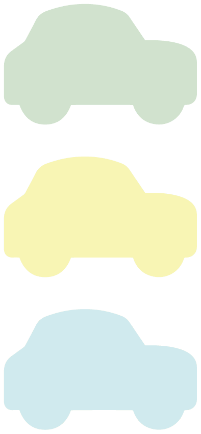 Etiketter som lämpar sig för organisering i barnrummet. Etiketter som har formen av en bil i tre olika färger.