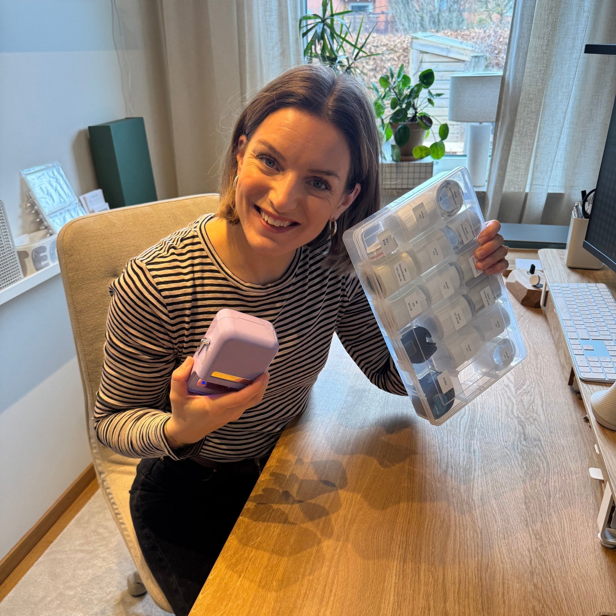 "Jag har valt ut de här etiketterna baserat på vad jag själv använder mest hemma – storlekar som fungerar i de flesta utrymmen, både i vitt och transparent."