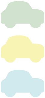 Etiketter som lämpar sig för organisering i barnrummet. Etiketter som har formen av en bil i tre olika färger.
